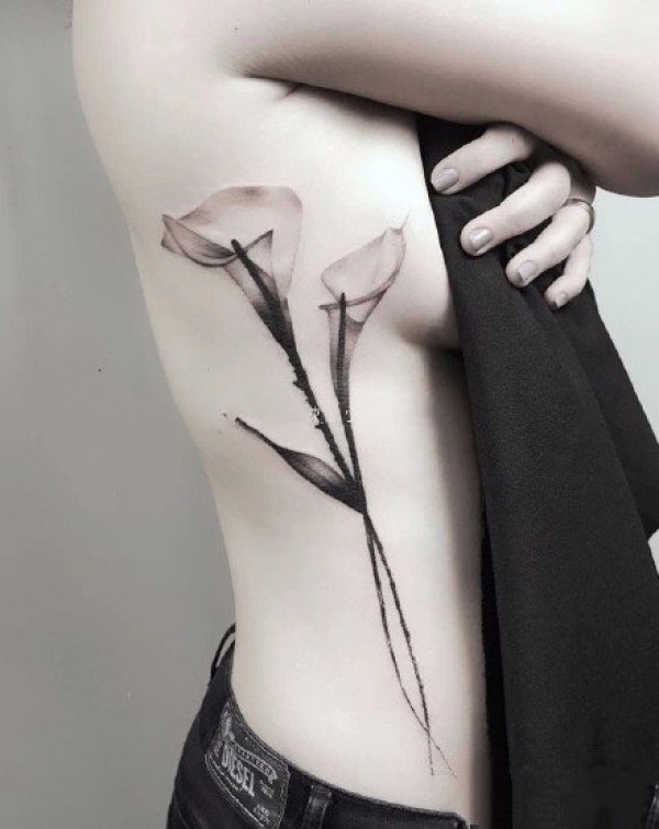 女性小纹身 适合女生的超简约水墨花纹身图案