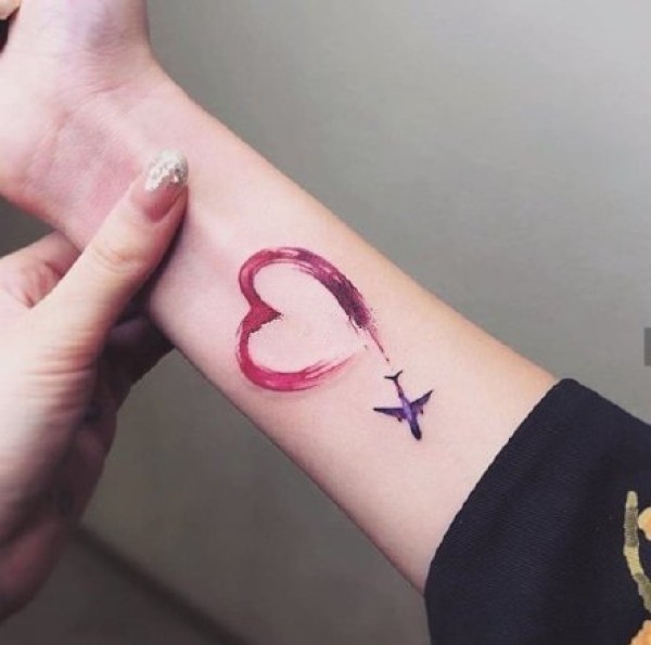 小飞机纹身 极简旅行主题的地图和小飞机纹身图案