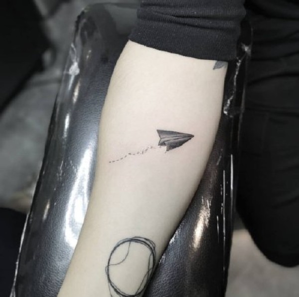 纸飞机纹身图案 男生手腕上黑色的纸飞机纹身图片