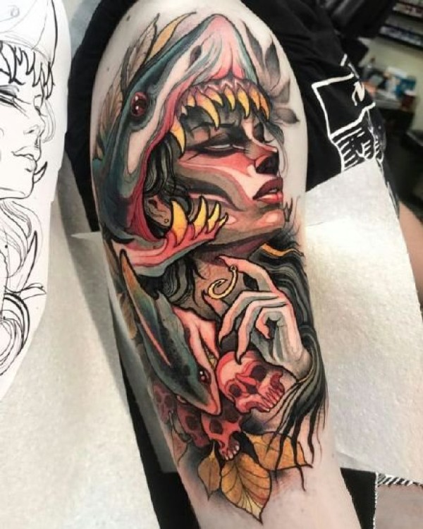 重彩色的一组9张包臂女郎人物纹身图片