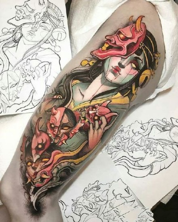 能面万媚纹身手稿_52张日式能剧面具纹身手稿图案素材欣赏
