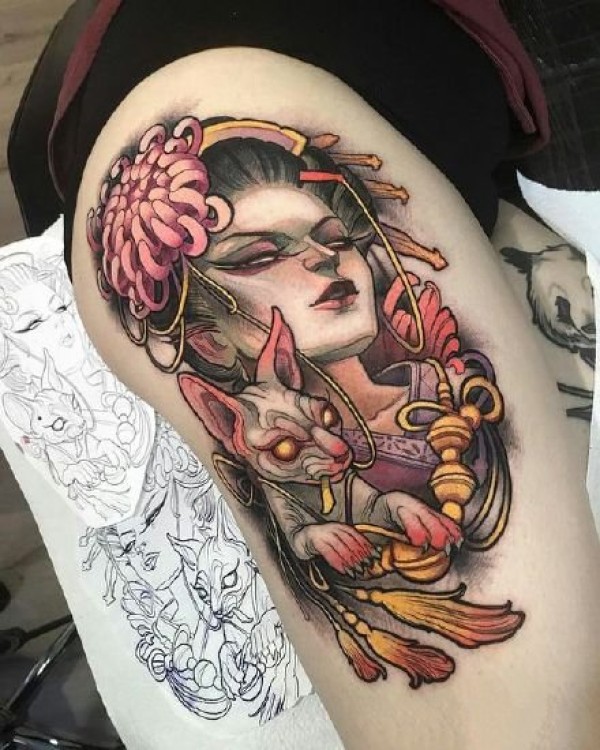 能面万媚纹身手稿_52张日式能剧面具纹身手稿图案素材欣赏