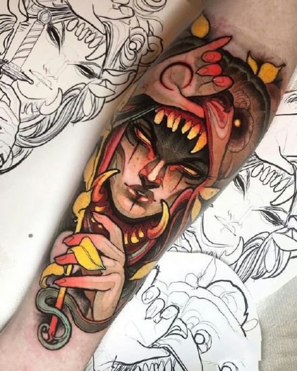 能面万媚纹身手稿_52张日式能剧面具纹身手稿图案素材欣赏