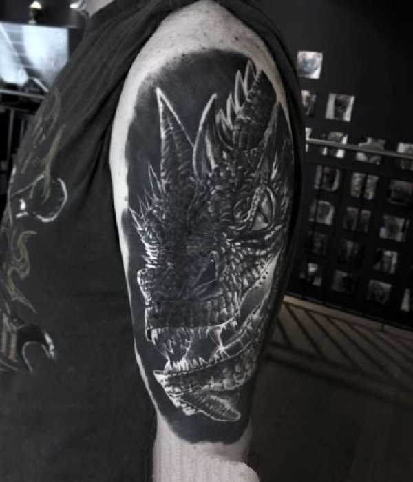 包臂写实纹身 15款包手臂的欧美写实黑灰图案