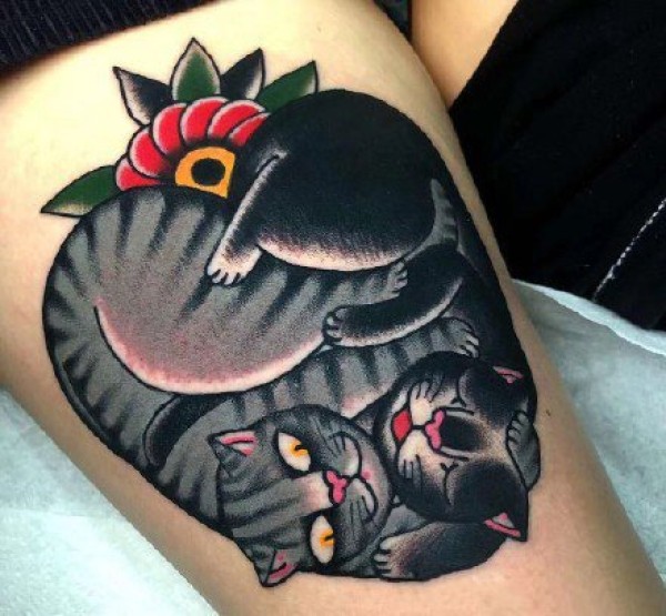 oldschool小猫咪纹身 school风格的9款猫主题纹身图片