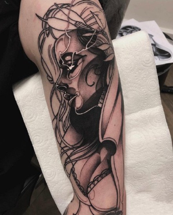 包臂女郎纹身 黑灰色的9款包臂女郎纹身作品图片