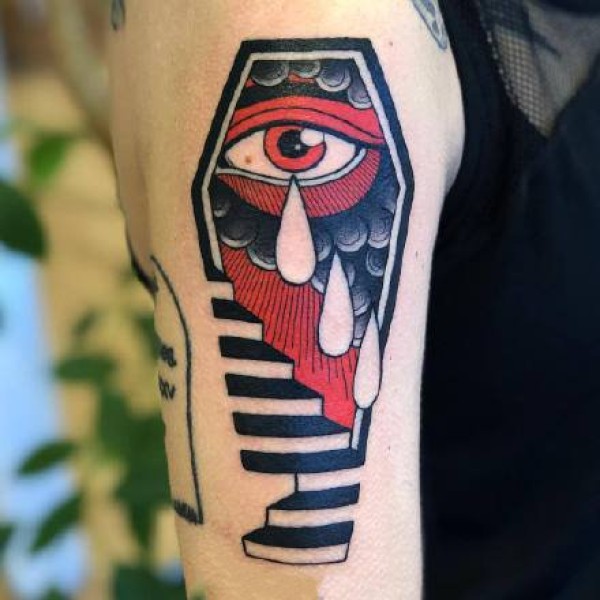吸血鬼的棺材文身手稿作品由纹身图吧分享