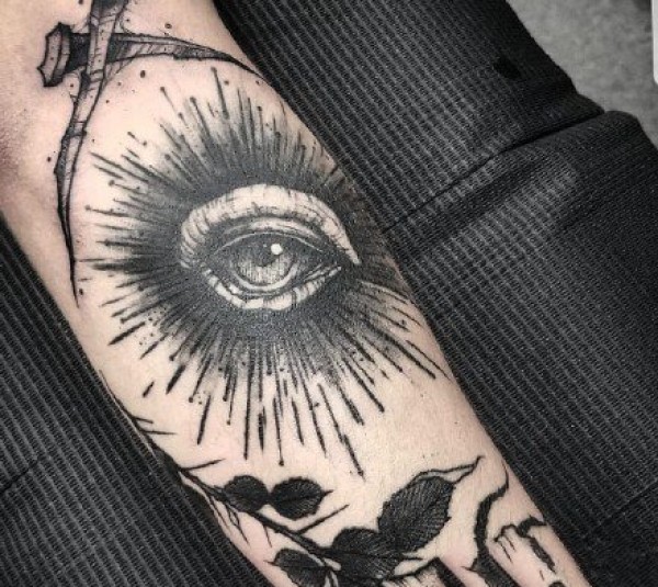 纹身眼睛纹身图案 男性手臂上穿透灵魂的黑色素描纹身眼睛纹身图案