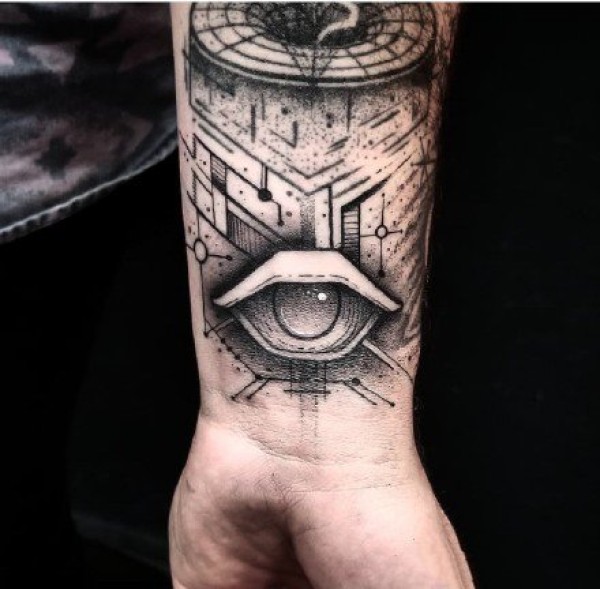 纹身眼睛纹身图案 男性手臂上穿透灵魂的黑色素描纹身眼睛纹身图案