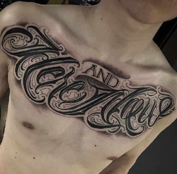 花体字纹身--一组男性漂亮的花体字纹身图案