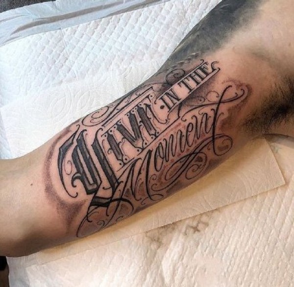 9张胳膊上很有个性的黑色英文花体字纹身图案