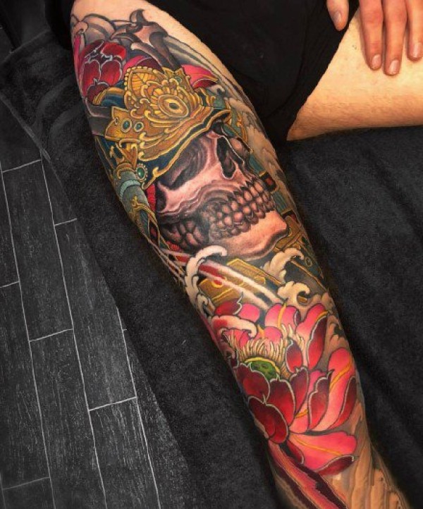 传统风格的一组男性花臂和花腿纹身图案欣赏