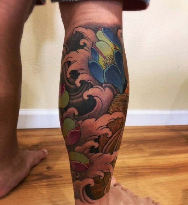 传统风格的一组男性花臂和花腿纹身图案欣赏