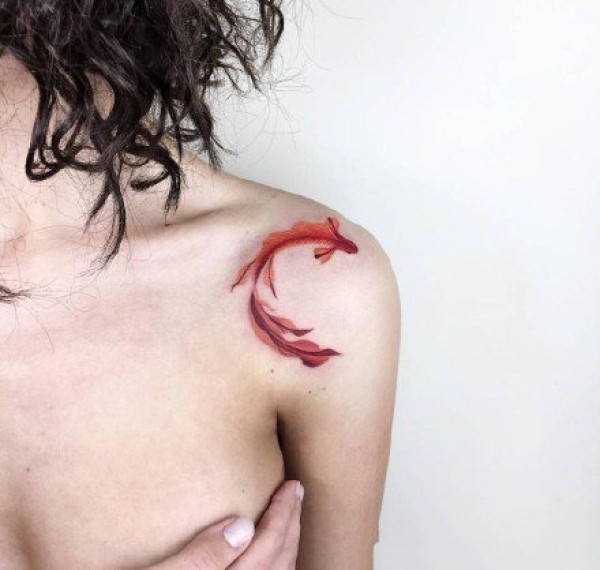 金鱼纹身 漂亮的9张唯美彩色小金鱼纹身图案