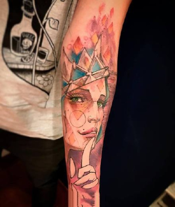 彩色的超现实主义纹身水彩纹身立体图案