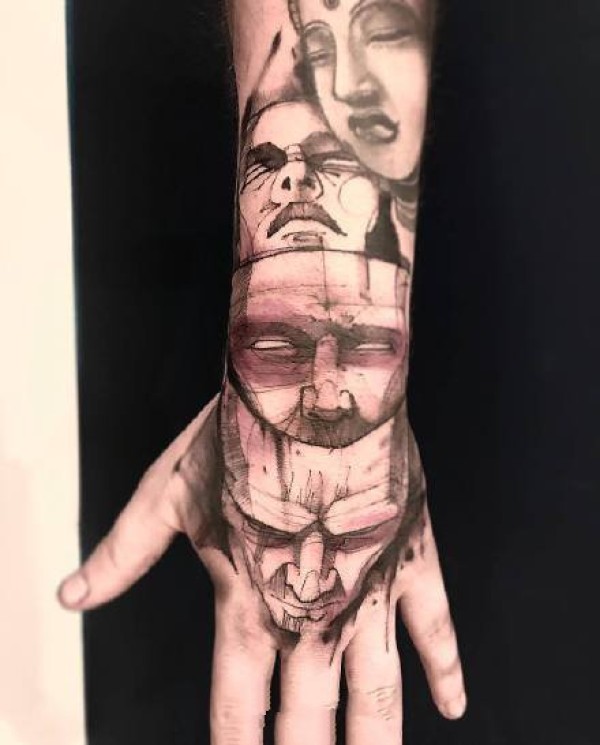 彩色的超现实主义纹身水彩纹身立体图案