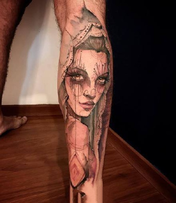 彩色的超现实主义纹身水彩纹身立体图案