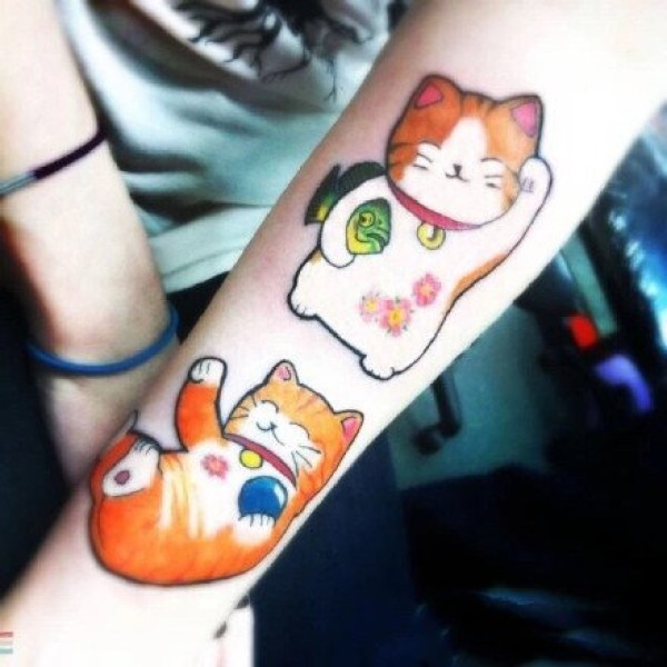 日式招财猫纹身女生手臂上日式招财猫面具纹身图片