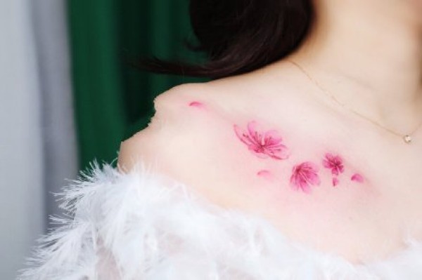 女生的一组粉色系小花花纹身图片