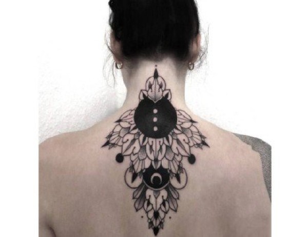 适合女生纹在后背脊柱处的唯美梵花纹身图案