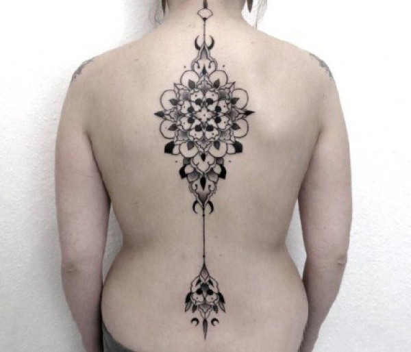 适合女生纹在后背脊柱处的唯美梵花纹身图案