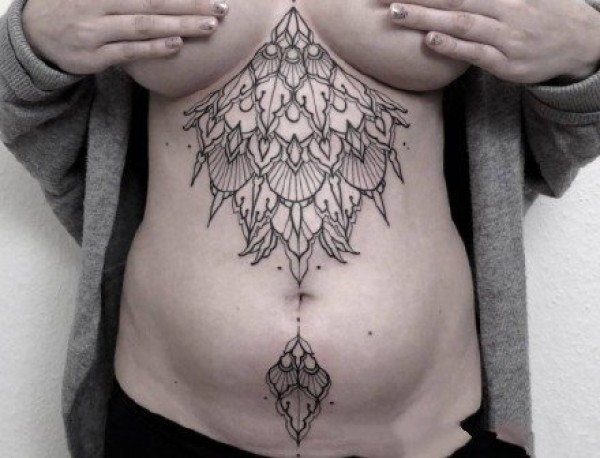 性感胸部纹身 9款女生别致优雅的胸下梵花纹身图案