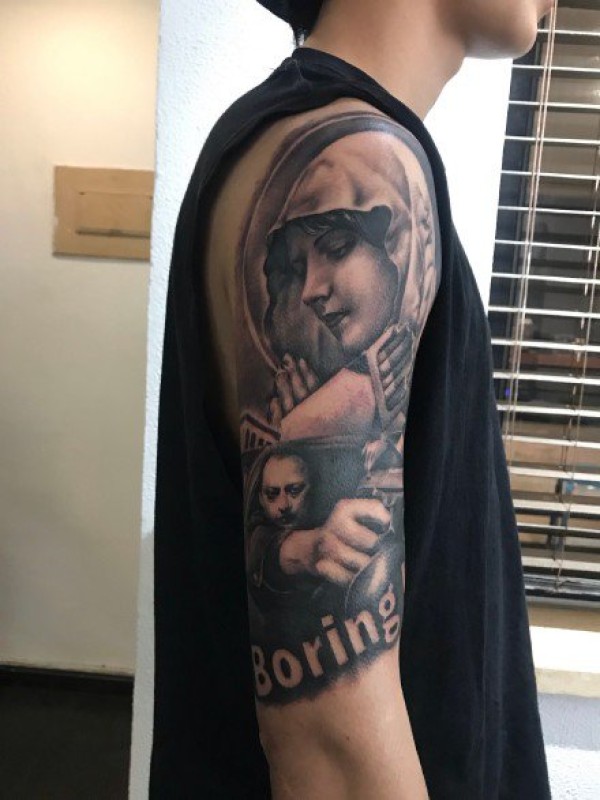 欧美宗教主题的一组包大臂写实纹身图片