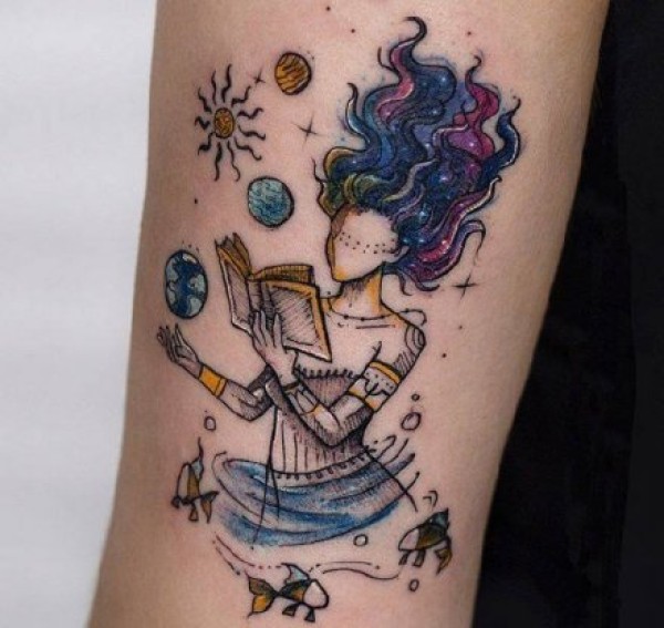 卡通小女生纹身 18张成套的唯美插画小女生纹身图片