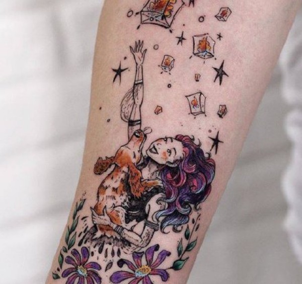 卡通小女生纹身 18张成套的唯美插画小女生纹身图片