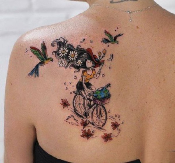 卡通小女生纹身 18张成套的唯美插画小女生纹身图片