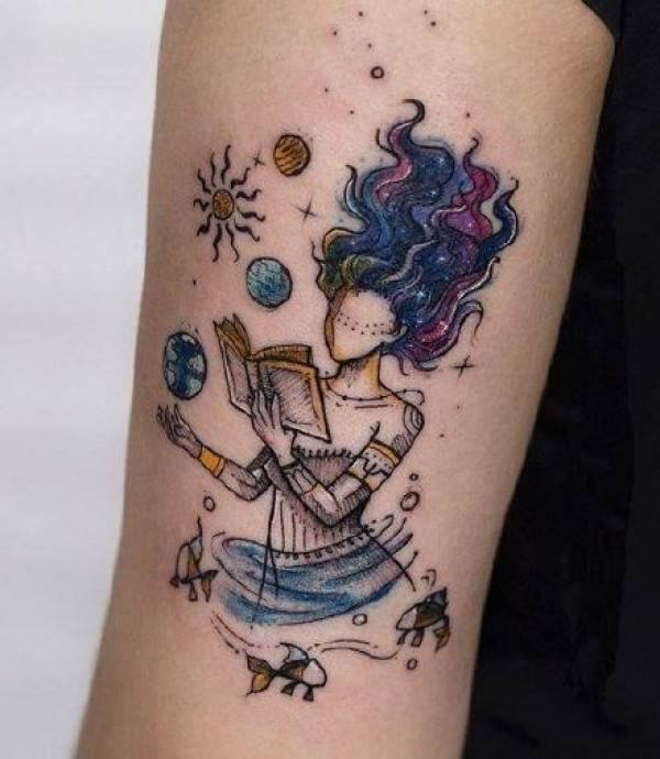 卡通小女生纹身 18张成套的唯美插画小女生纹身图片