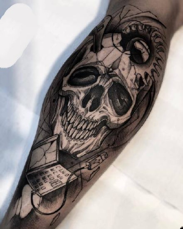 一套很优秀的手臂黑灰纹身作品图案