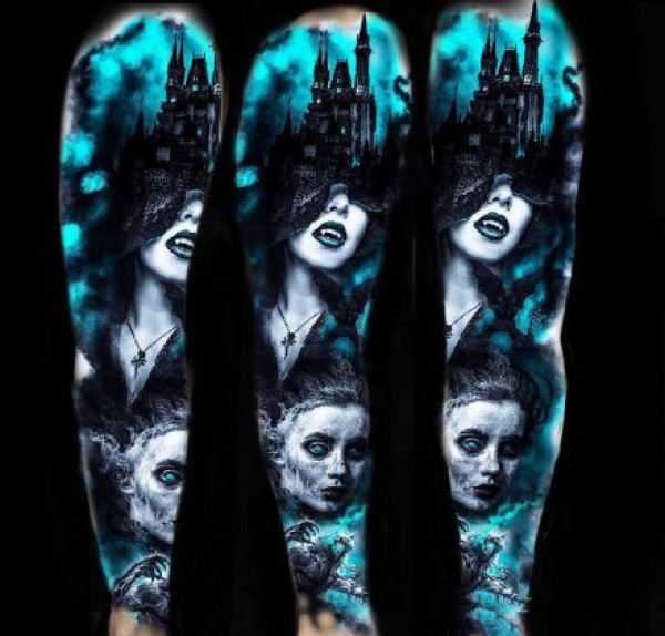 梦幻炫彩的一组大花臂纹身作品欣赏