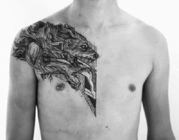 男性胸部纹身 黑灰色的9张男士胸前纹身作品图案
