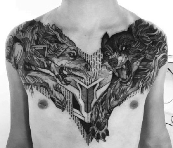 男性胸部纹身 黑灰色的9张男士胸前纹身作品图案