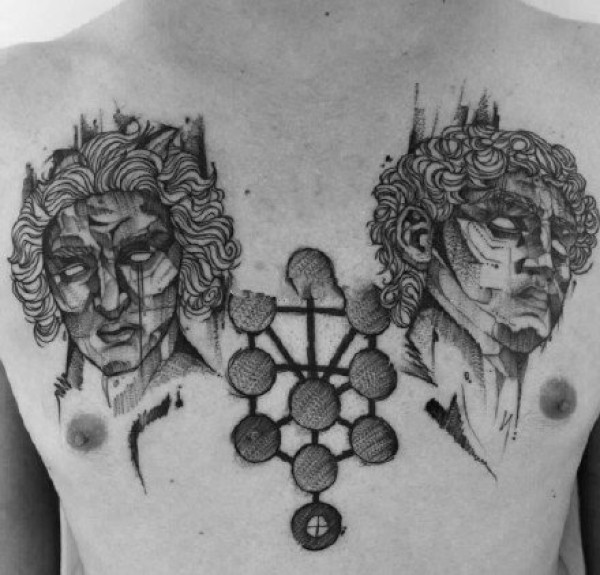 双子座纹身手稿_29张十二星座之双子座纹身图案手稿