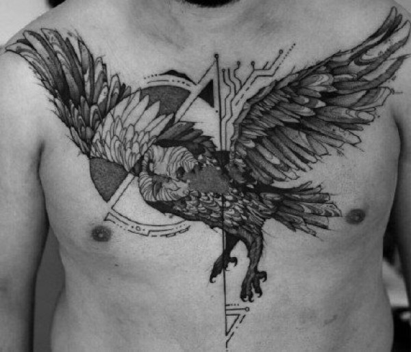 男性胸部纹身 黑灰色的9张男士胸前纹身作品图案