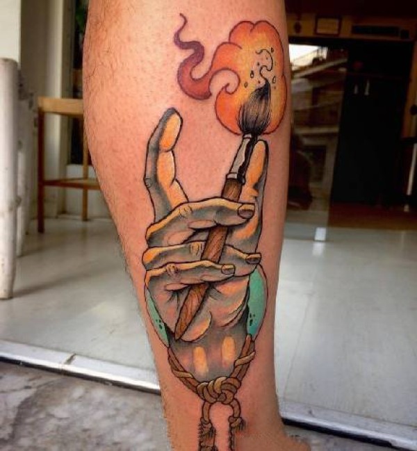 小手臂上school风格的彩图纹身欣赏