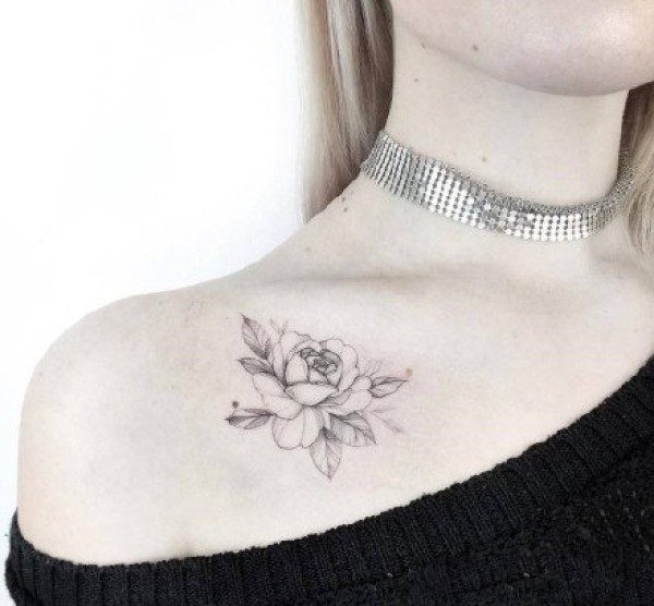 大臂素花纹身 9款女士的大臂黑灰花朵植物纹身图案