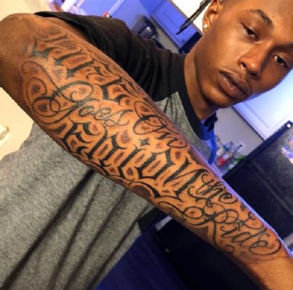 9张胳膊上很有个性的黑色英文花体字纹身图案