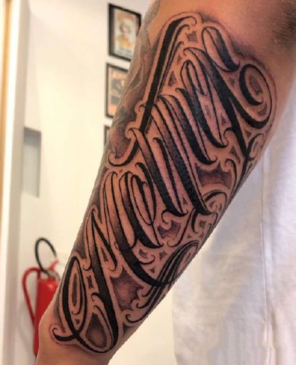 小臂花体英文纹身 设计感十足的花体英文纹身图案