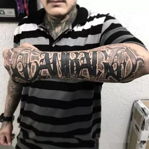 9张胳膊上很有个性的黑色英文花体字纹身图案