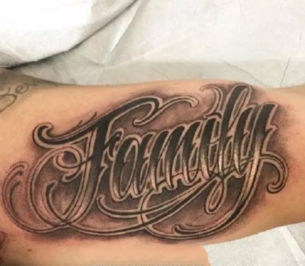 9张胳膊上很有个性的黑色英文花体字纹身图案