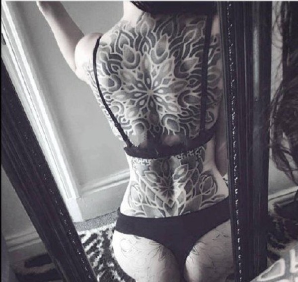 适合女生纹在后背脊柱处的唯美梵花纹身图案