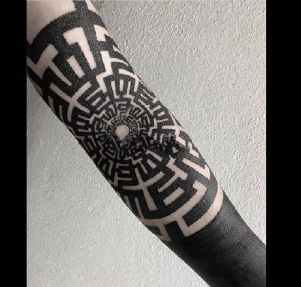 手背到小臂上的黑色点刺梵花纹身图案9张