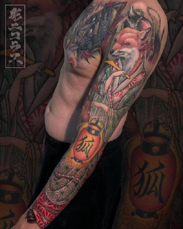 传统风格的一组男性花臂和花腿纹身图案欣赏