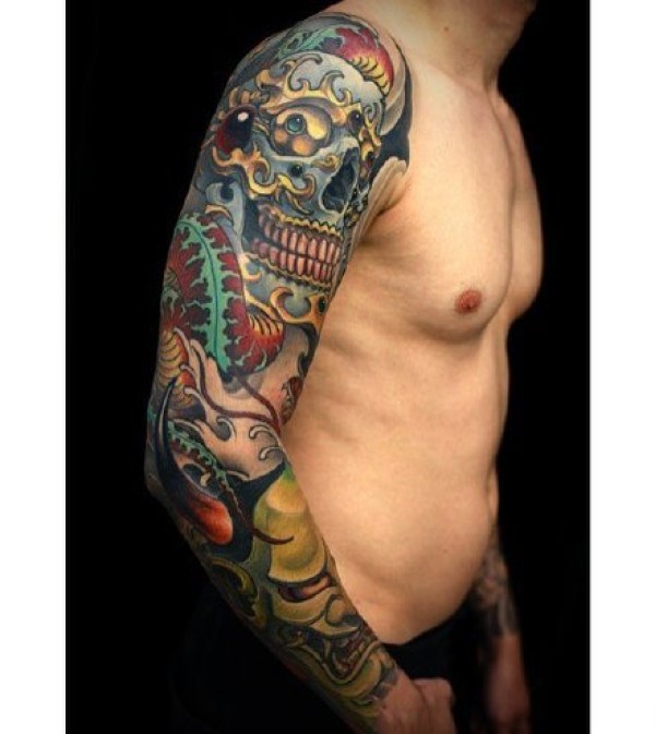 传统风格的一组男性花臂和花腿纹身图案欣赏