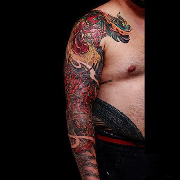 传统风格的一组男性花臂和花腿纹身图案欣赏