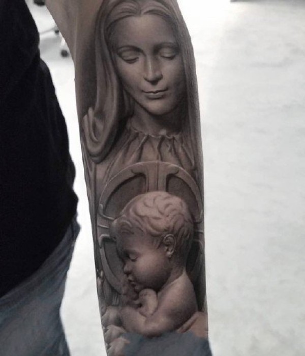 欧美包臂的超写实人像纹身图案