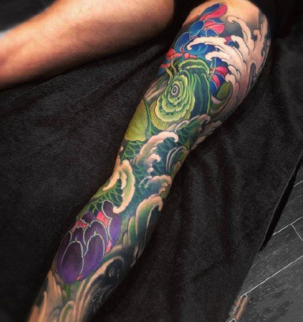 日本彩色新传统传奇人物纹身动物图案纹身 by Yushi Tattoo